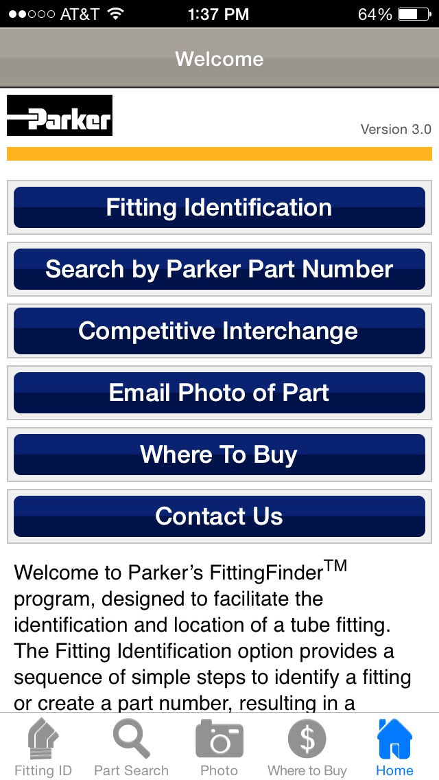Parker fitting identification and locator for finding the correct part number of many of the Parker fittings you seek. A handy distributor locator and CAD models are also included.