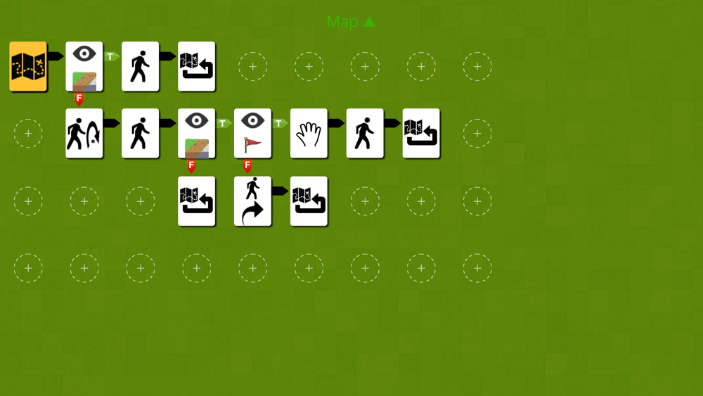 * Loops, branches and if/else, goto labels, looking and chaining looks to look ahead, goto's, and simple memory using colored flags are the main tools used to introduce programming