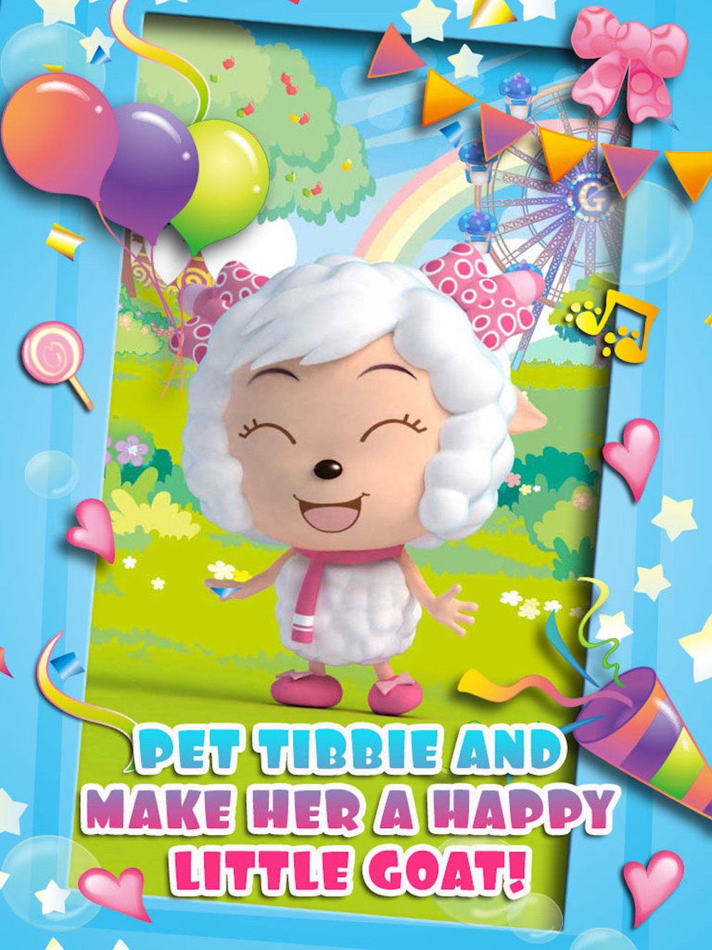 Tibbie is a little goat who lives in a prairie and always loves wearing pink horns and shoes. She’s dainty, shy, flirty, loves fashion, and always wants to look her best. She also loves to play, laugh, jump, and dance with her friends.