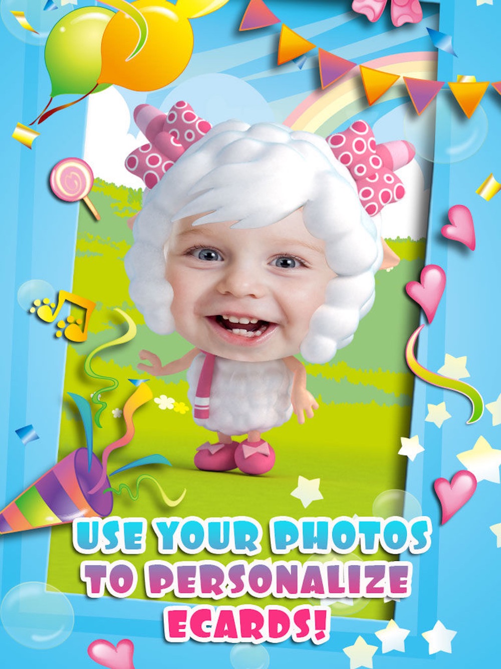 Touch her with your finger to see her funny reactions and animations, listen to her songs and watch her dance, dress her up in accessories, and share funny, personalized videos and eCards with your friends.
