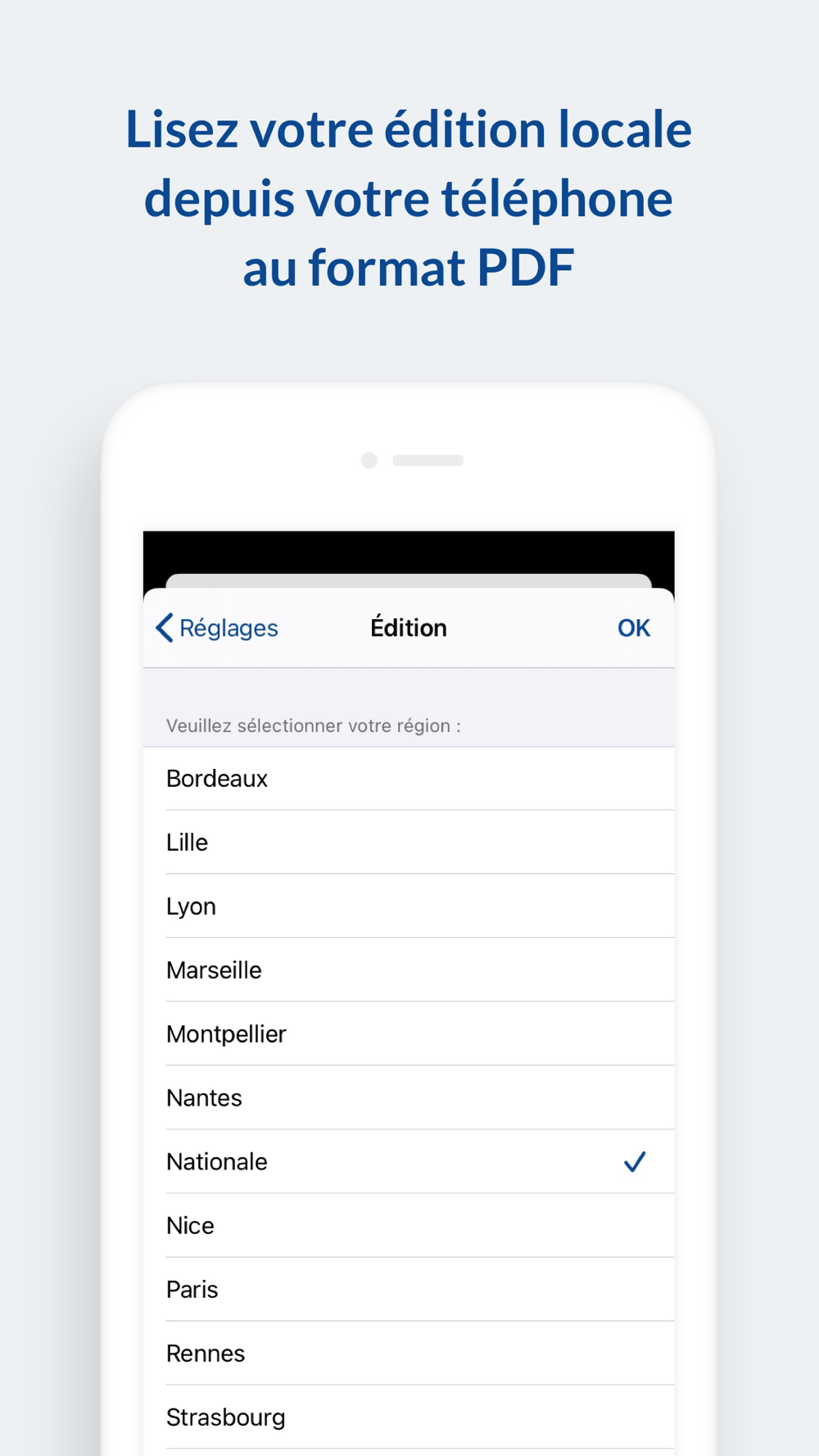 En fonction de votre zone géographique, vous pouvez sélectionner l’édition de votre région. Et ainsi recevoir votre journal téléchargé au format PDF sur l’application avant même sa parution.
