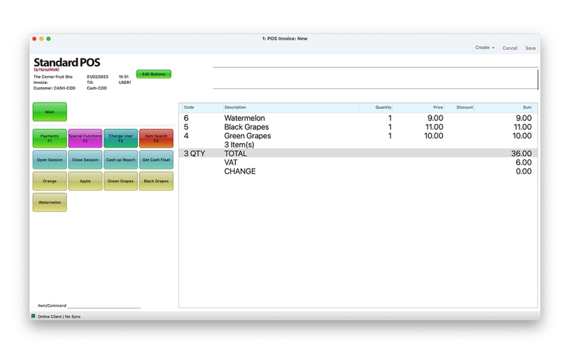 Multiple payment method support. - Cash, Card, Cheque, On account, Contactless.