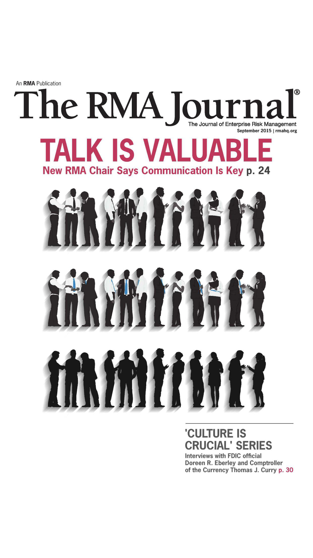 The RMA Journal® is The Risk Management Association’s award-winning magazine. With more than 90,000 readers, The RMA Journal® is one of the top 5 banking magazines in the U.S. From its roots in commercial lending, The RMA Journal® today is the only U.S. publication offering in-depth coverage of credit, operational, and market risks. The RMA Journal® also recognizes the need for integrated risk management and was the first publication to promote enterprise risk management (ERM) in the financial services industry.