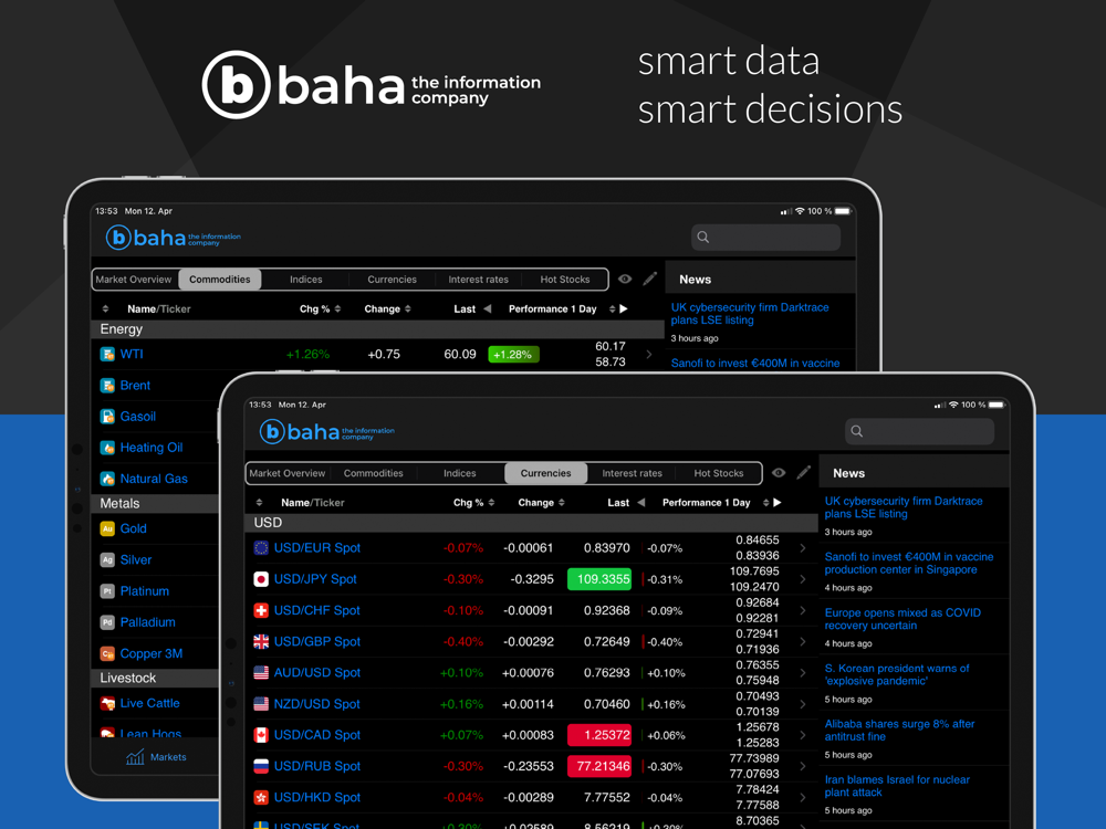 Real-time prices, historical data, intuitive analytics – track your portfolio, get price alerts and receive 24/7 global news straight to your phone with our market-leading mobile app.