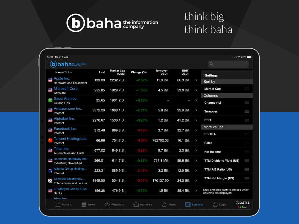 Get access to free live quotes and push prices from markets around the world, including quality news from our newsroom, company profiles, full screen real-time charts, stock screener, currency converter and much more. Full personalization possible with custom watchlists, portfolios and price-based push alerts.