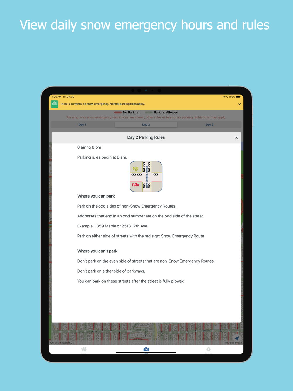 If you live, work or travel in Minneapolis, you're expected to know the winter rules of the road. With the Minneapolis Snow Emergency Rules app, it's easy to know when a Snow Emergency is in effect.