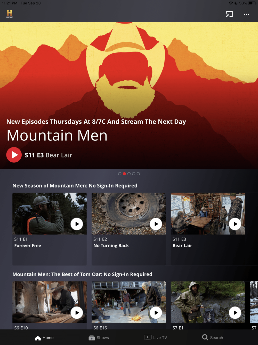 Alone, The Curse of Oak Island, Pawn Stars, Mountain Men, Forged in Fire, American Pickers, to name a few.