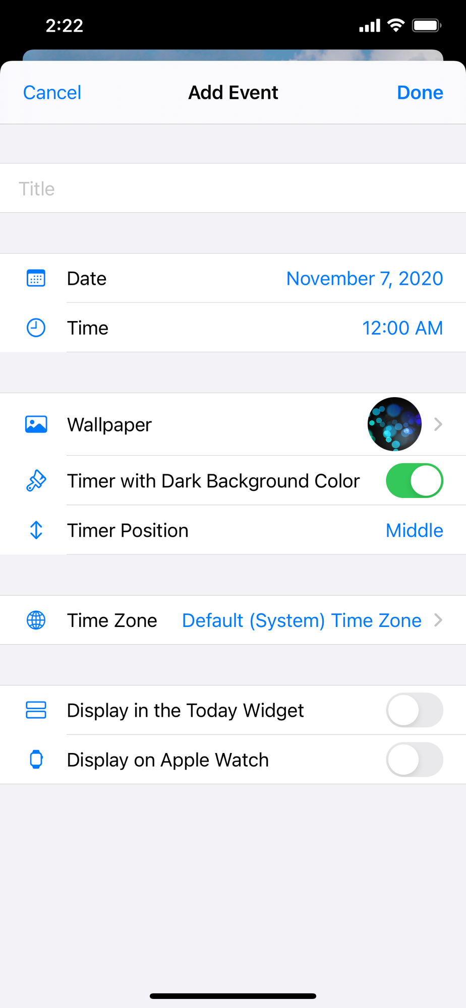 * Customize each event with your own wallpaper or photo