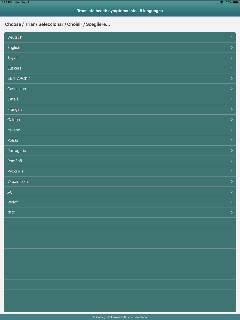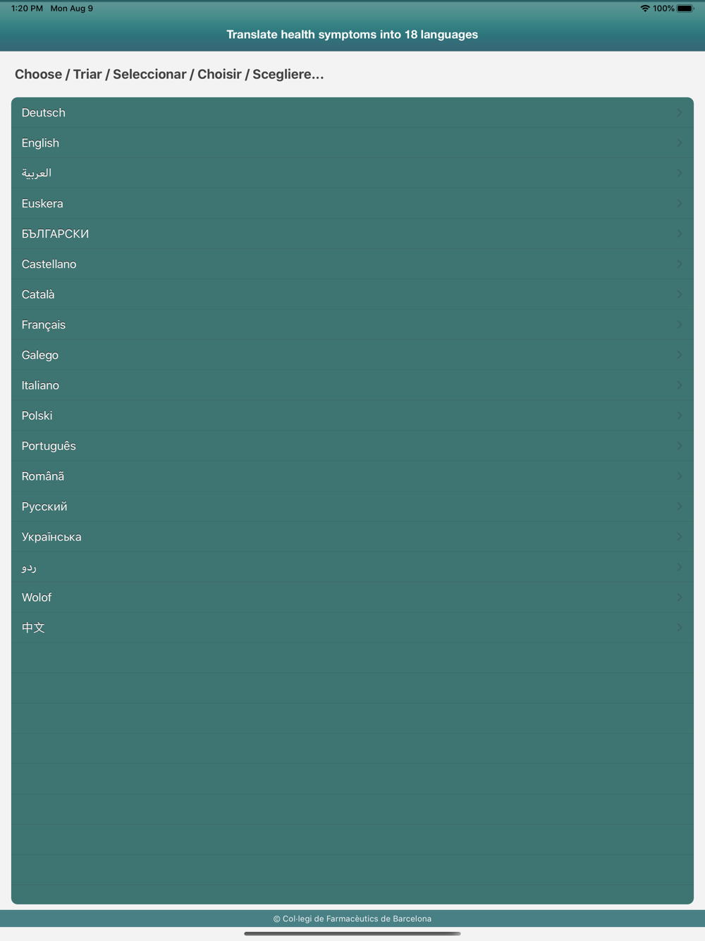 Are you travelling and you don’t know how to say that you’ve got stomach pains? Did you arrive recently to this country and you still don’t master the language? With the assistance of this translator in 18 languages, you will be able to explain which symptoms you suffer from to the chemist, the doctor, the teacher, etc. It will help you for sure.