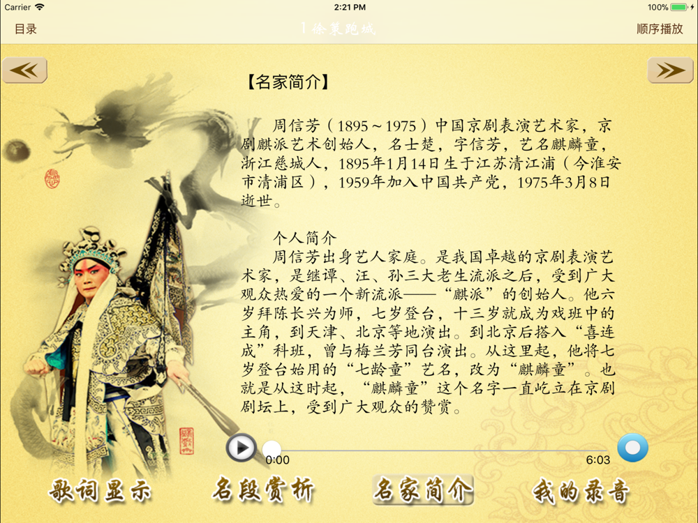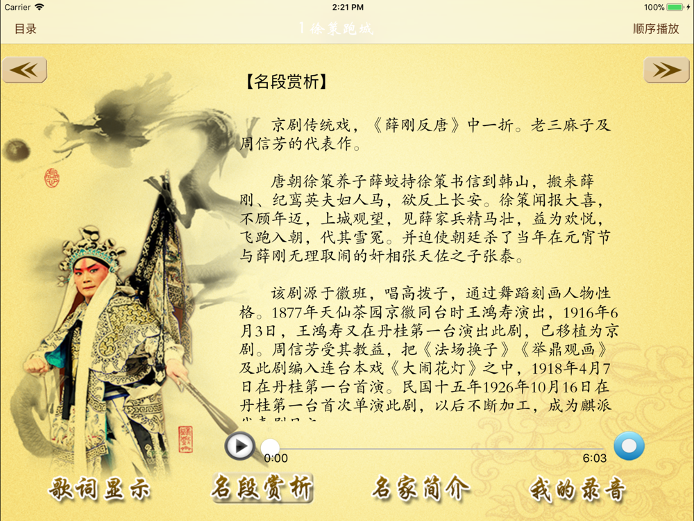 •同步显示—戏曲音频播放时,唱词内容同步显示。