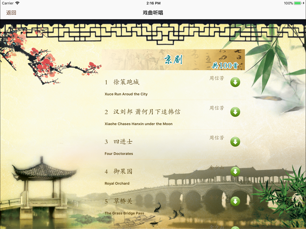 •按需下载—用户可根据需要下载或删除戏曲的音频。