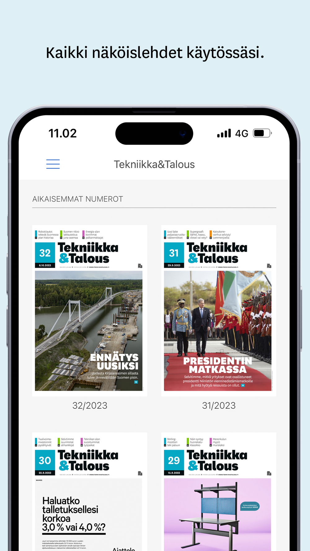 Näköislehtien lukeminen sovelluksen kautta edellyttää voimassa olevaa Tekniikka & Talouden digi- tai yhdistelmätilausta. Voit hankkia käyttöoikeuden sovelluksen näköislehtiin kuukausitilauksena myös in app -ostona suoraan sovelluksesta.