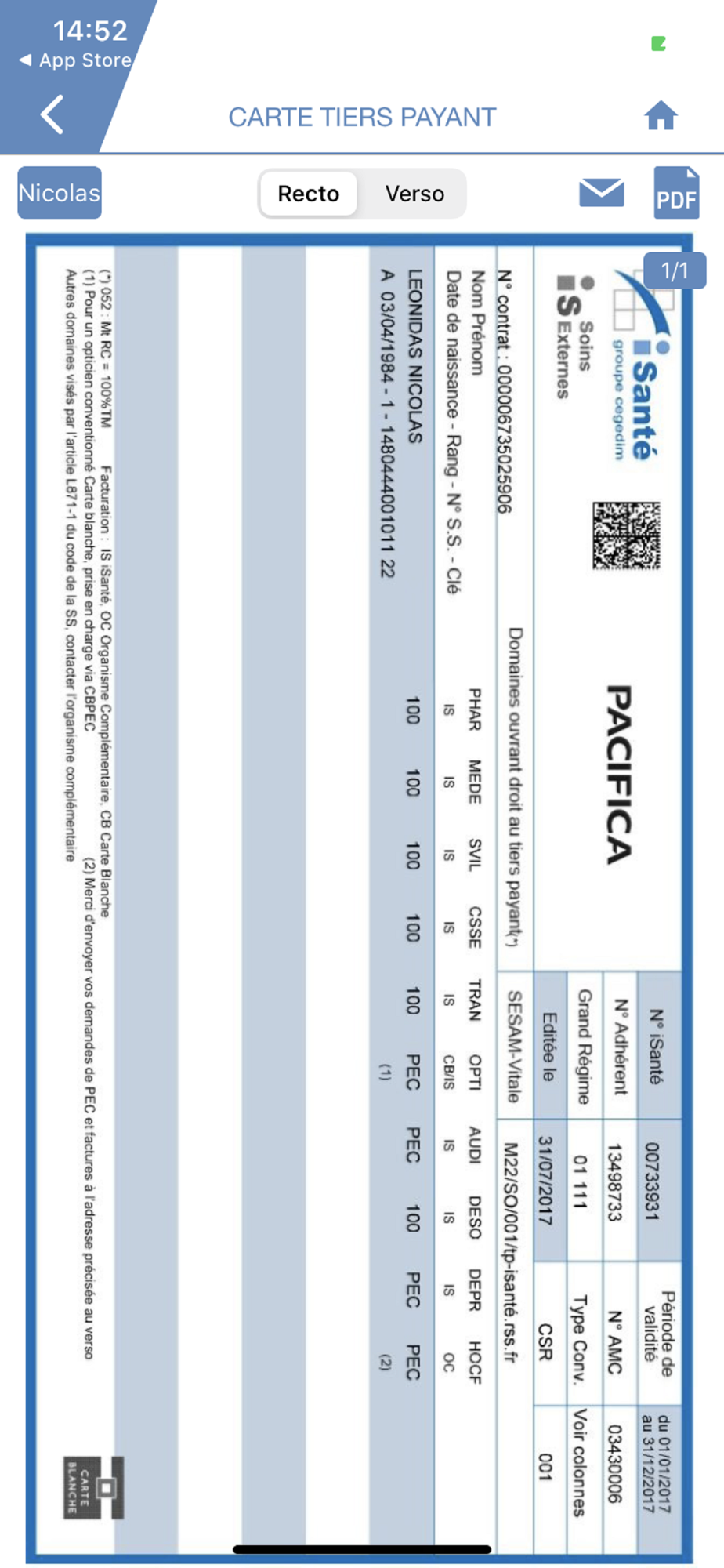 - Consulter, télécharger ou envoyer par mail votre carte de tiers payant