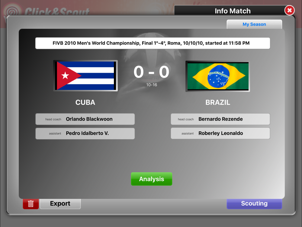 Click&Scout is fully compatible with all programs by Data Project. You can export the scout and the teams in Data Video, Data Video Essential or Data Volley 2007, and you can import a scout previously created with Data Volley 2007 or with another Click&Scout installed on another device.