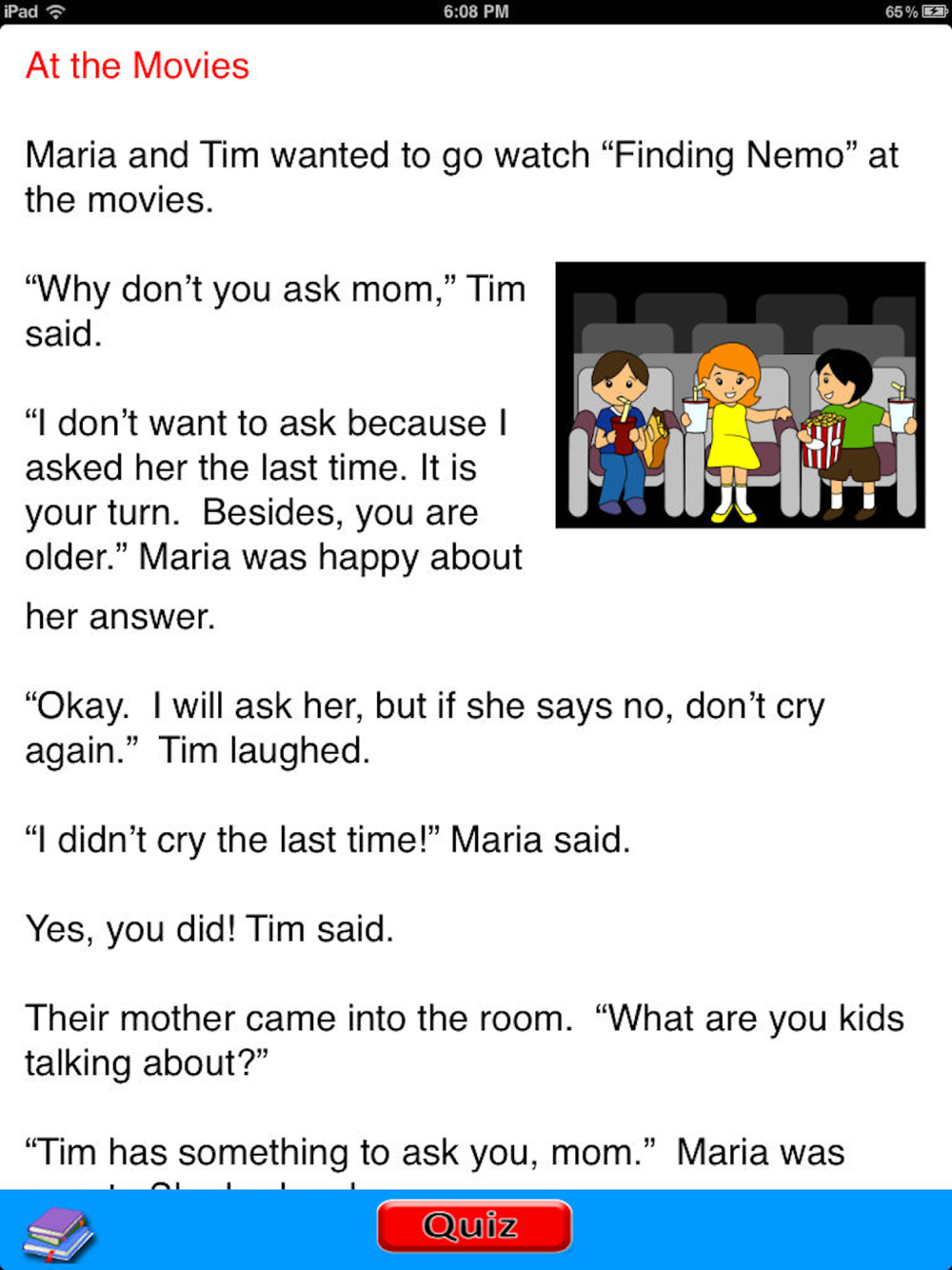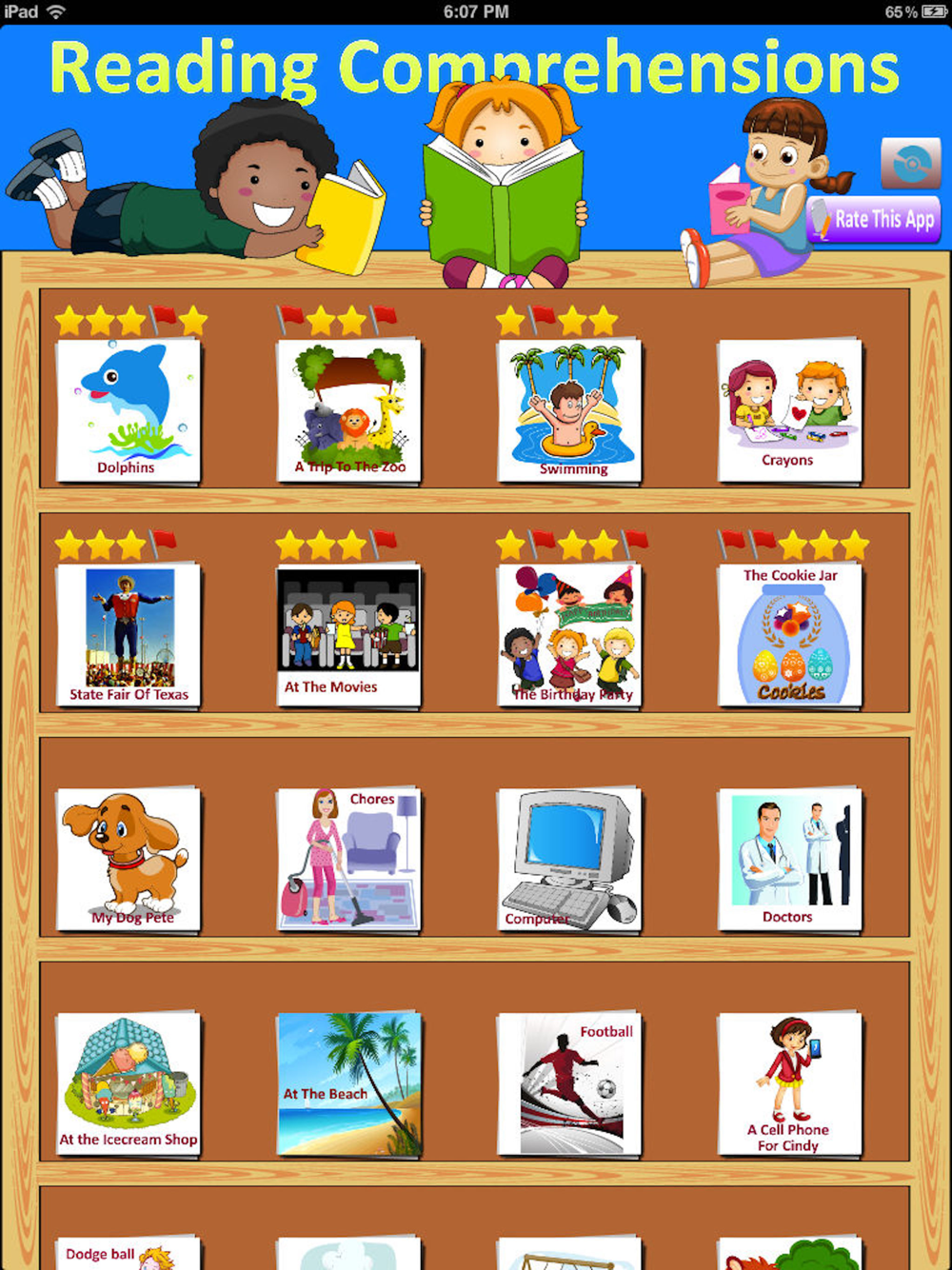 - Multiple choice questions follow each story. The app is convenient and simple to operate. It was tested on grade one and two children who enjoyed it immensely.