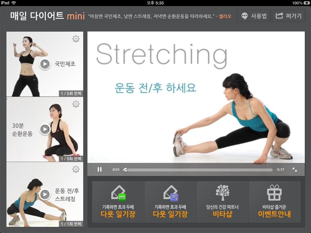 '국민체조'와 '순환운동'을 아이패드를 이용하는 분들을 위해 어플로 만들어봤습니다.