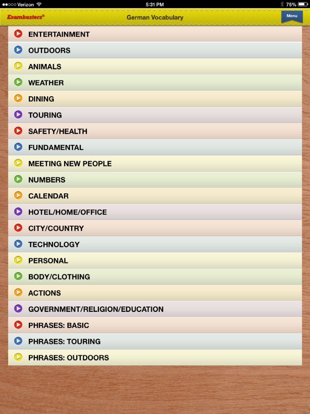 Choose from: Regents German Vocabulary JUMBLE, Regents German Vocabulary REVIEW, and Regents German Vocabulary QUIZ. EXAMBUSTERS Regents German Vocabulary prep flash cards . . . the ultimate Regents German Vocabulary study guide in an app!
