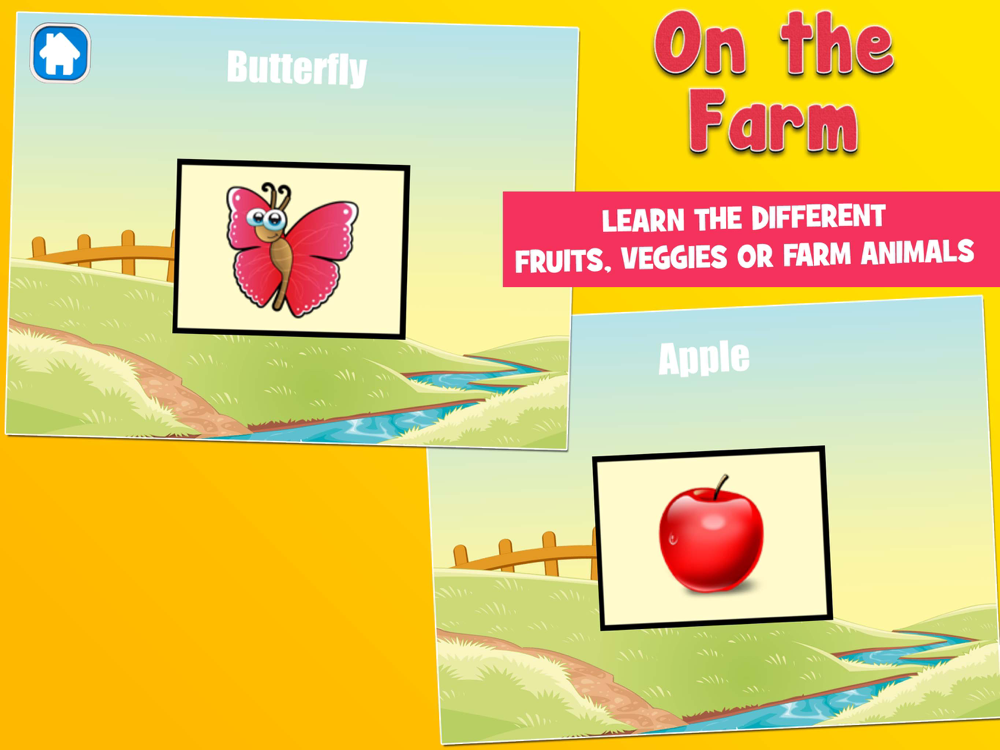 app will help them recognize and be familiar with the different farm animals, fruits and vegetables we can find in a farm.