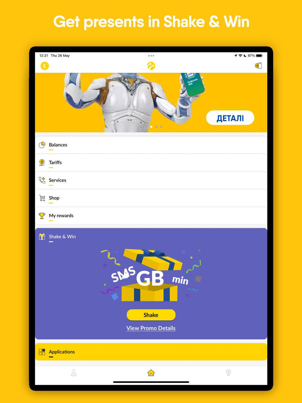 With free My lifecell app lifecell subscribers are able to conveniently control their expenses and manage their mobile number. In "Shake&Win" section you can win gigabytes of data traffic, free minutes, SMS, and other useful gifts. Don’t miss!