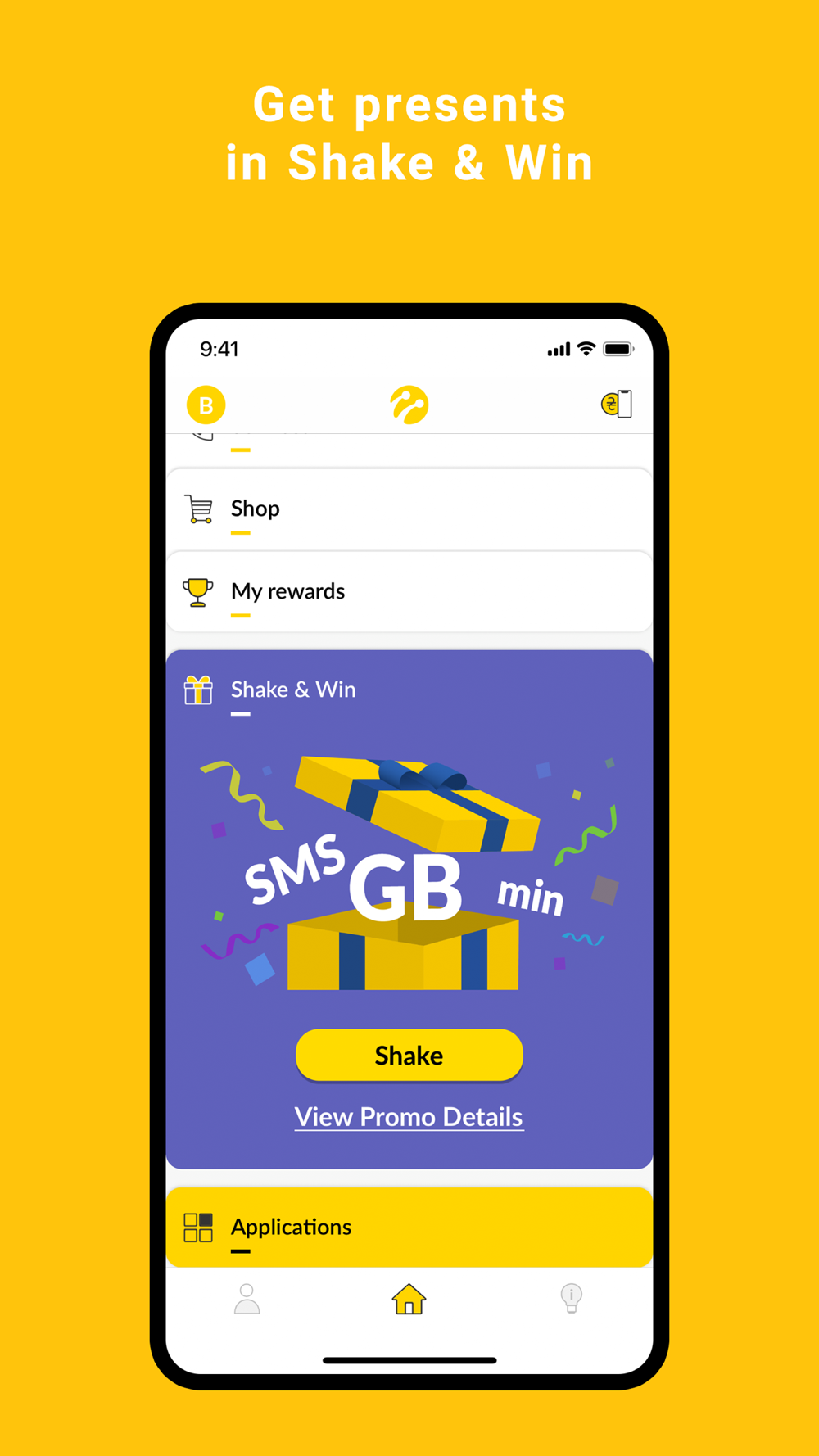 - win gifts in "Shake&Win" section and receive special offers in "My Rewards" section;