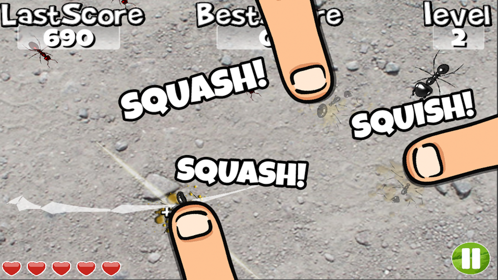 Tap all the ants that appear on the screen with your fingers, before they leave the screen be very careful don't tap the red ants, they are very dangerous.