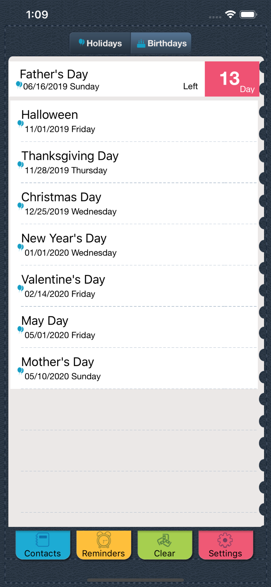 √ Reminders for Holidays and Birthdays