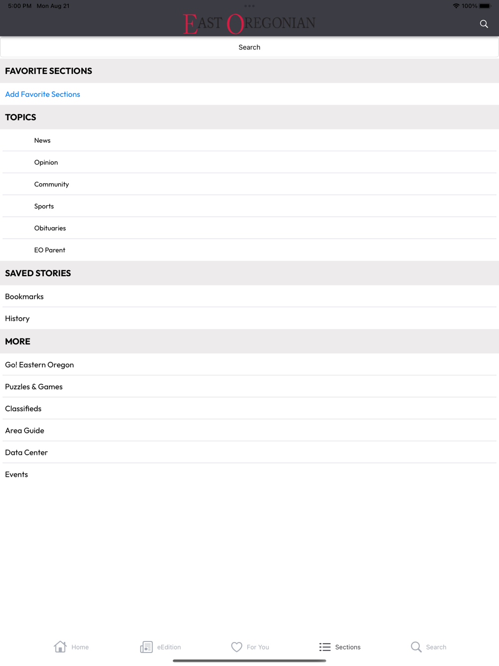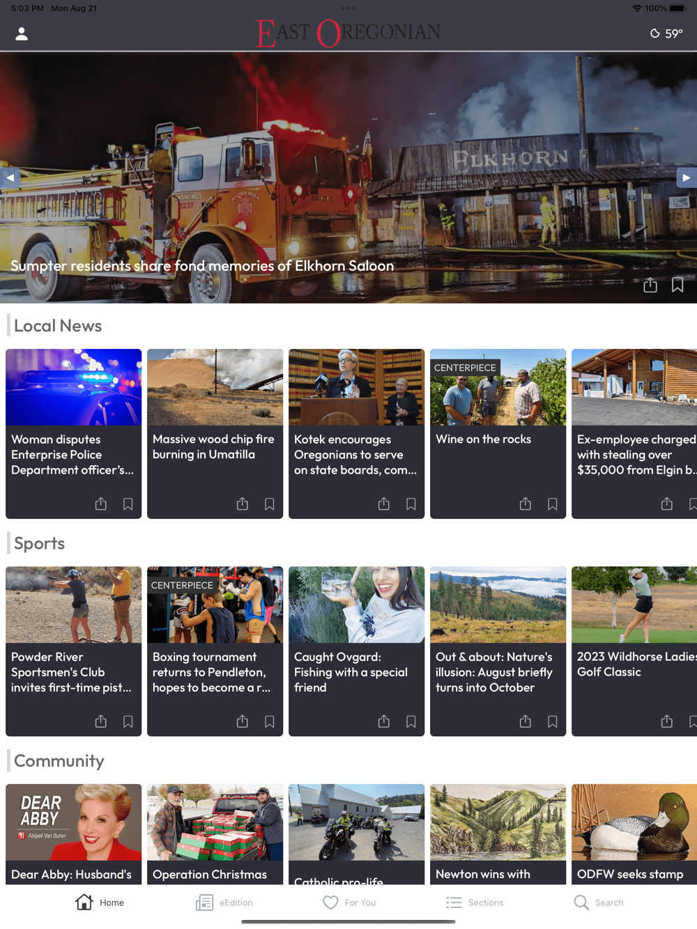 The East Oregonian is available everywhere you are. The app gives you access to local and regional news. Since 1875, the East Oregonian has been northeastern Oregon's largest regional newspaper, covering Umatilla and Morrow Counties. The EO provides distinctively local news, sports, and information.