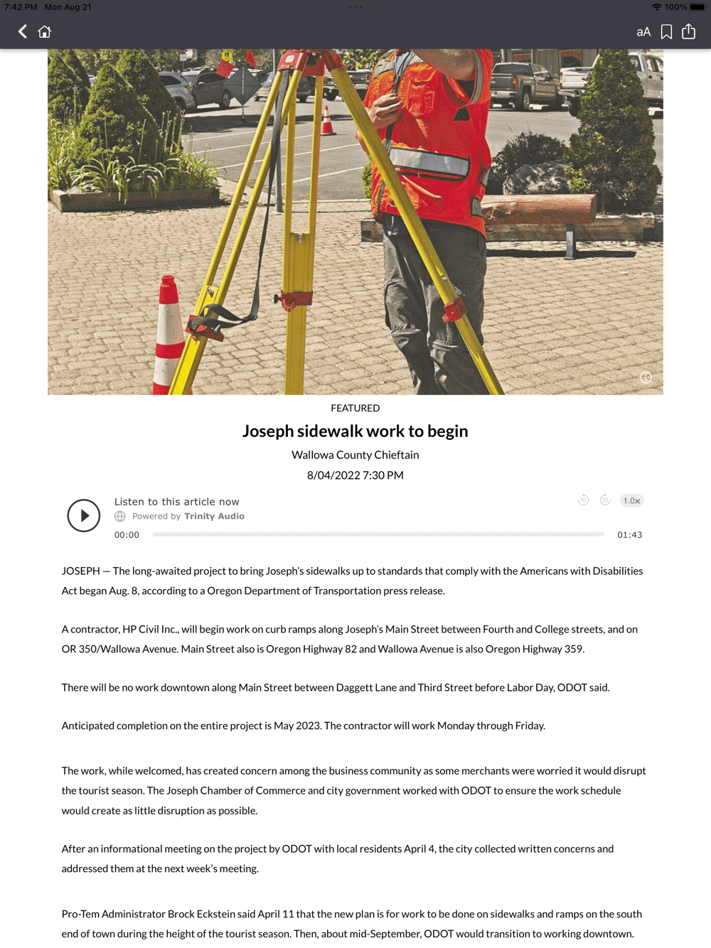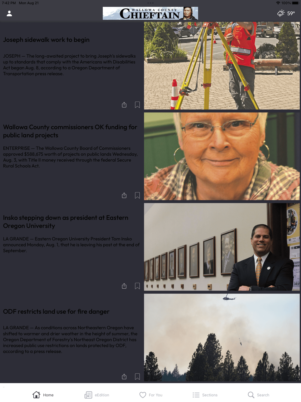 The Wallowa County Chieftain is available everywhere you are. The app gives you access to local and regional news. Wallowa County Chieftain is a weekly newspaper and website based in Enterprise, Oregon. With a long history of chronicling the daily life of the northeast corner of Oregon. Since 1884, the Chieftain has published every week, never missing an issue for over a century. Today it stands as the county’s only newspaper and Wallowa County’s oldest business by far.