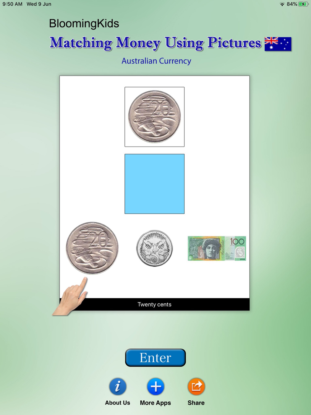 Australian Money Matching - The student matches pictures of coins and notes with similar pictures.This teaching program aimed at autistic, learning disabled, and young mainstream children.