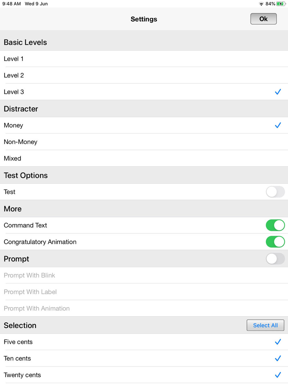This option is selected by default. When this box is checked, the program pronounces the name of the coin or note. If unchecked, it doesn't say the name.