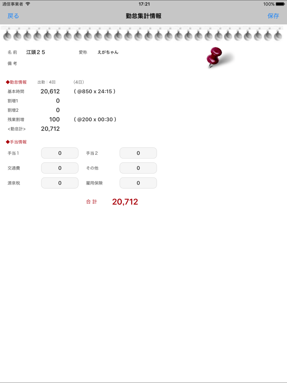 パート・アルバイト勤務/給与計算を究極の低コストで、簡単に管理できるアプリとなっています。