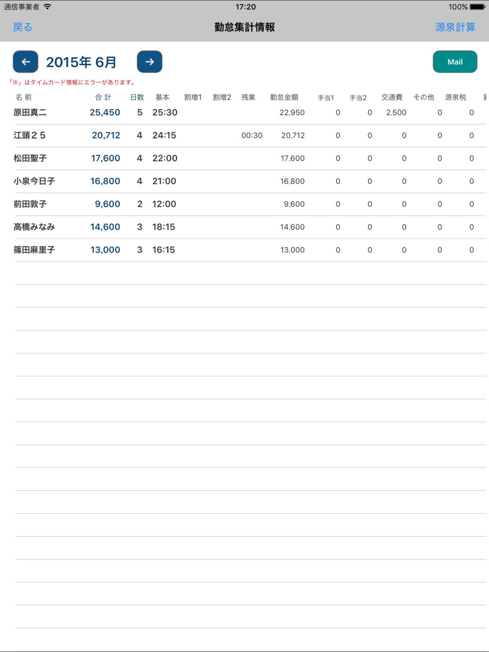 打刻すると即座に勤務計算されますので、月中においても、人件費の把握が可能です。