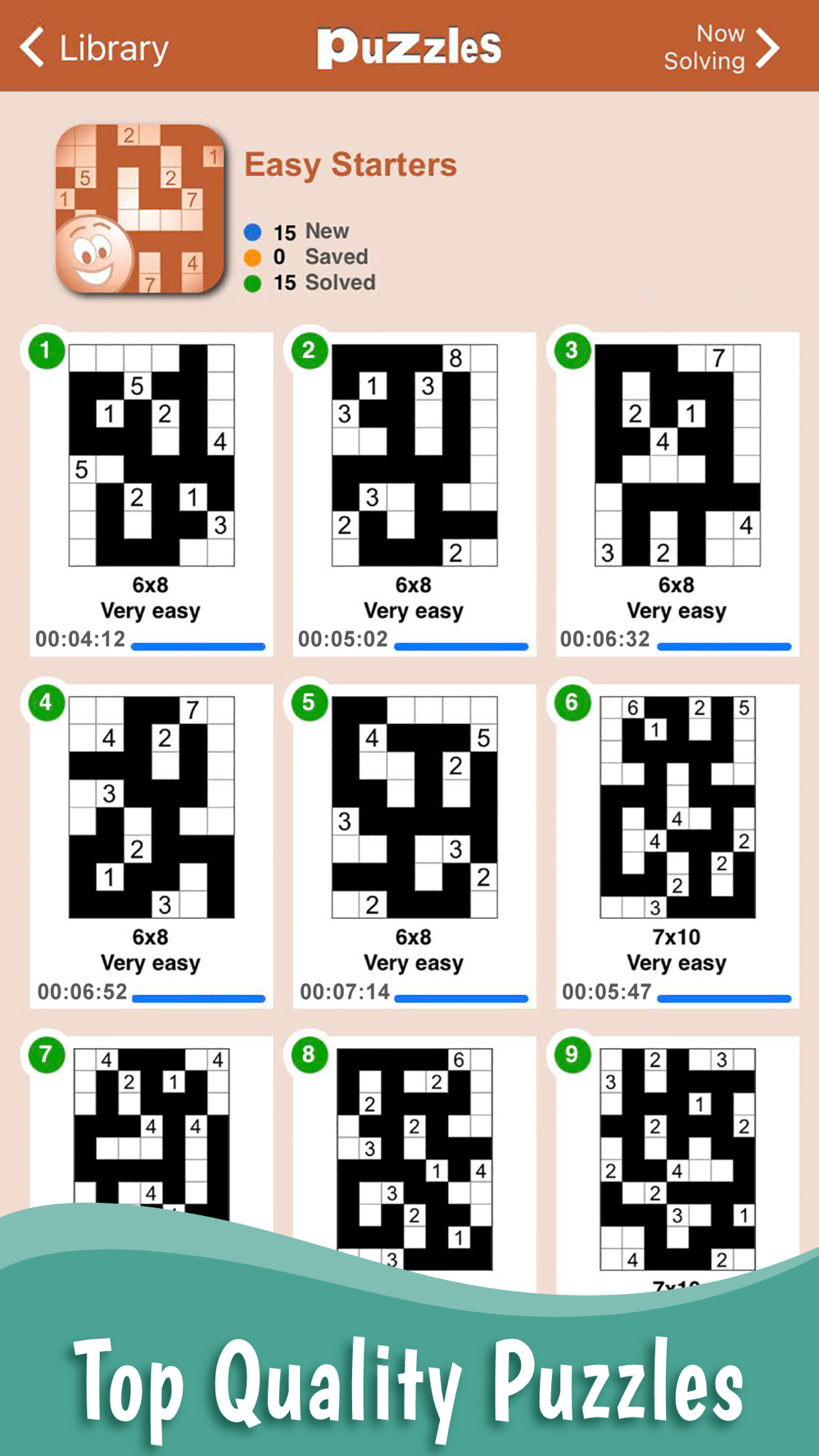 Nurikabe have also become popular under other names such as Islands in the Stream and Cell Structure. Similar to Sudoku, Kakuro and Hashi, the puzzles are solved using logic alone. All puzzles in this app are produced by Conceptis Ltd. - the leading supplier of logic puzzles to printed and electronic gaming media all over the world. On average, more than 20 million Conceptis puzzles are solved each day in newspapers, magazines, books and online as well as on smartphones and tablets across the world.