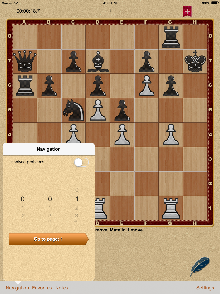 Great app.i am waiting for mate in 2,mate in 3.chess combinations 3 to 5 movers.Keep up the good work.