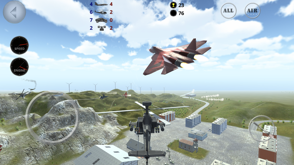 Handle modern combat fighters, helicopters, jeeps and antiaircrafts
