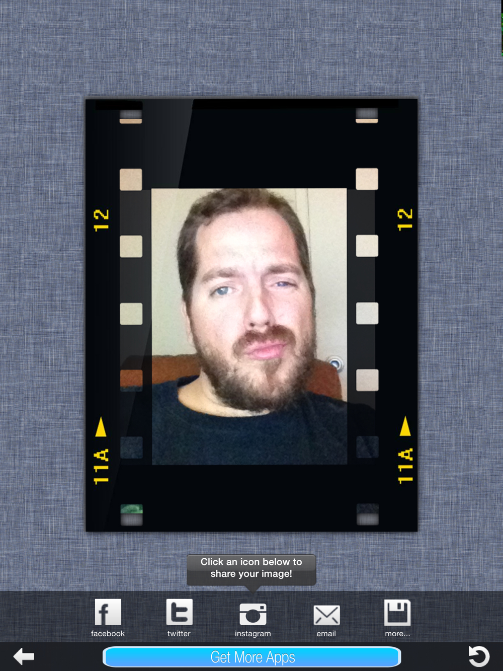 Then you can add captions, goodies, and frames to your pic and share it via Facebook, Twitter, e-mail, etc….