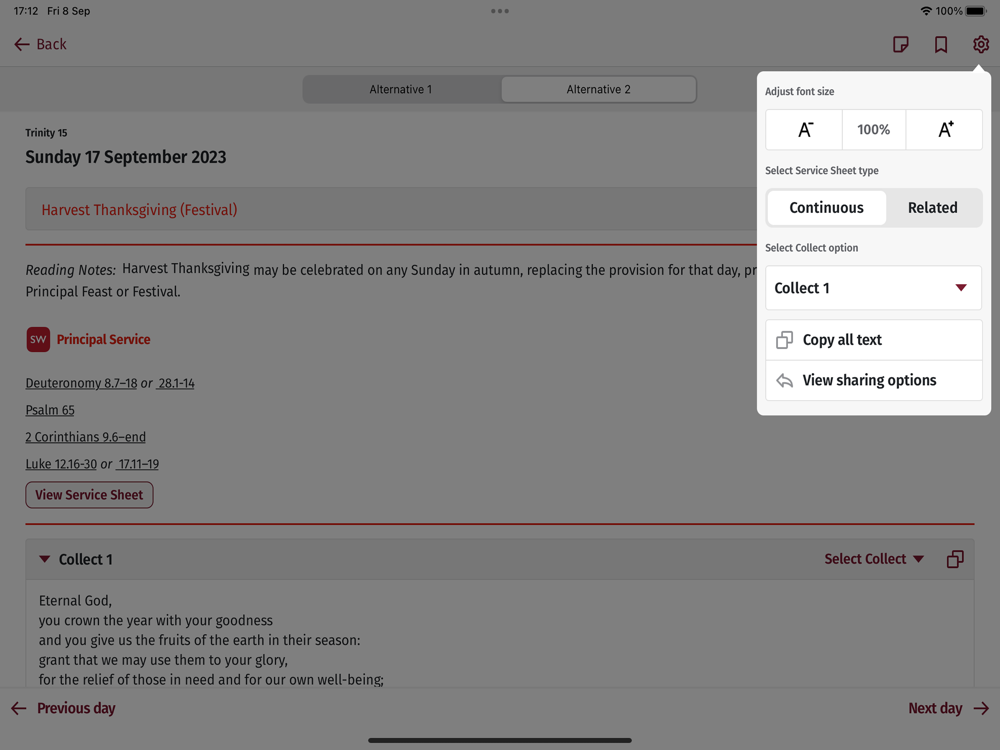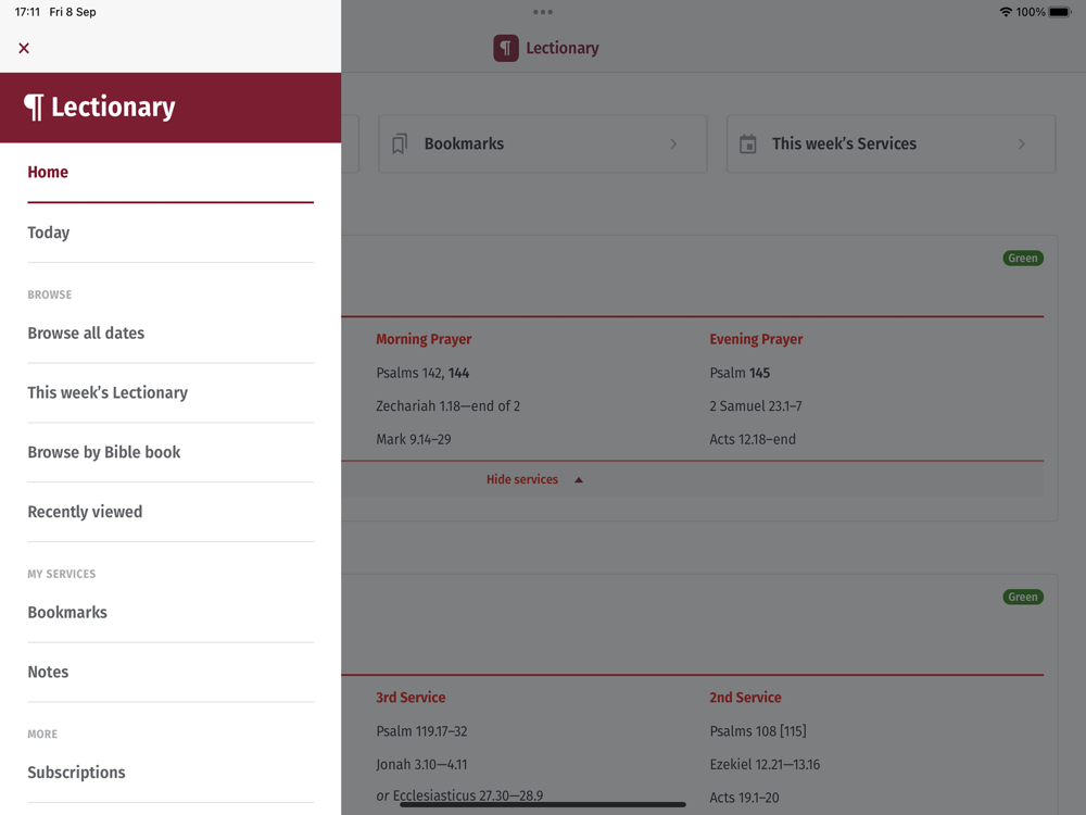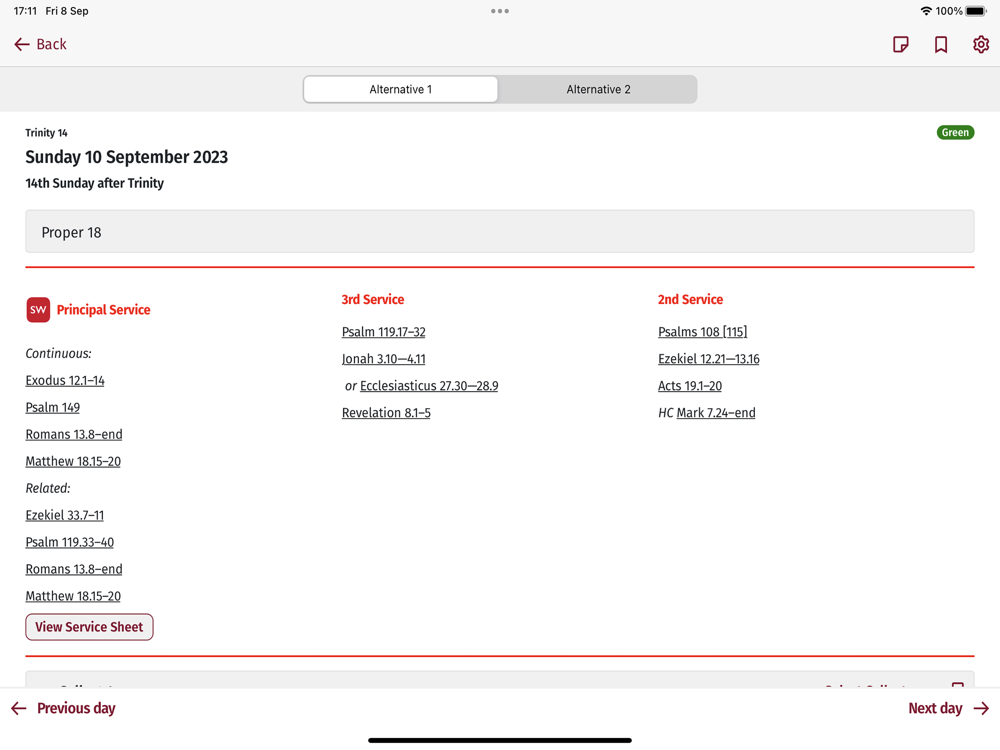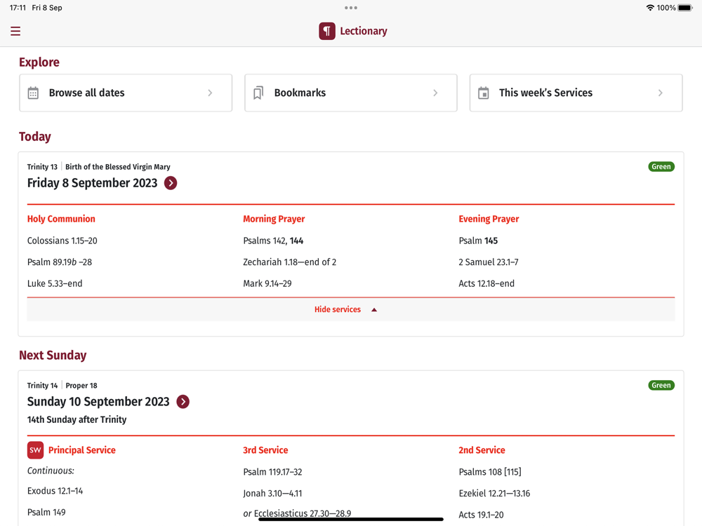 The Common Worship Lectionary app includes the official Calendar, Bible Readings (NRSV) and Collects from the Church of England.