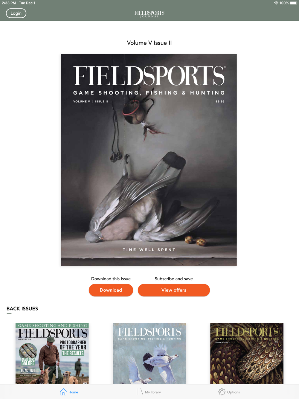 Fieldsports Magazine is a country pursuits bi-monthly of unsurpassed quality with an emphasis placed on the finest game shooting, fishing and hunting both in the UK and abroad. Each issue delivers a stunning editorial features, topical news, opinion, products and comment, all accompanied by world class photography, in a timeless but contemporary design.**