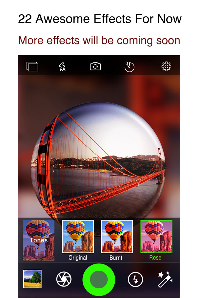 This is a powerful camera app that can transform your iPhone/iPod into a special camera with 10 lenses, 5 Crystal Scenes, 7 color Ringflashes, and 70 film effects. It's easy to switch between the lenses, Crystal Scenes, Ringflashes, and films. Similar to the other famous LOMO cameras, your iPhone will not only have a simulated 170-degree wide-angle view and stunning fisheye barrel distortion, but also a live fisheye viewfinder and fantastic Crystal Scenes. Using this app can bring you the same feel and happiness as using an analog camera.