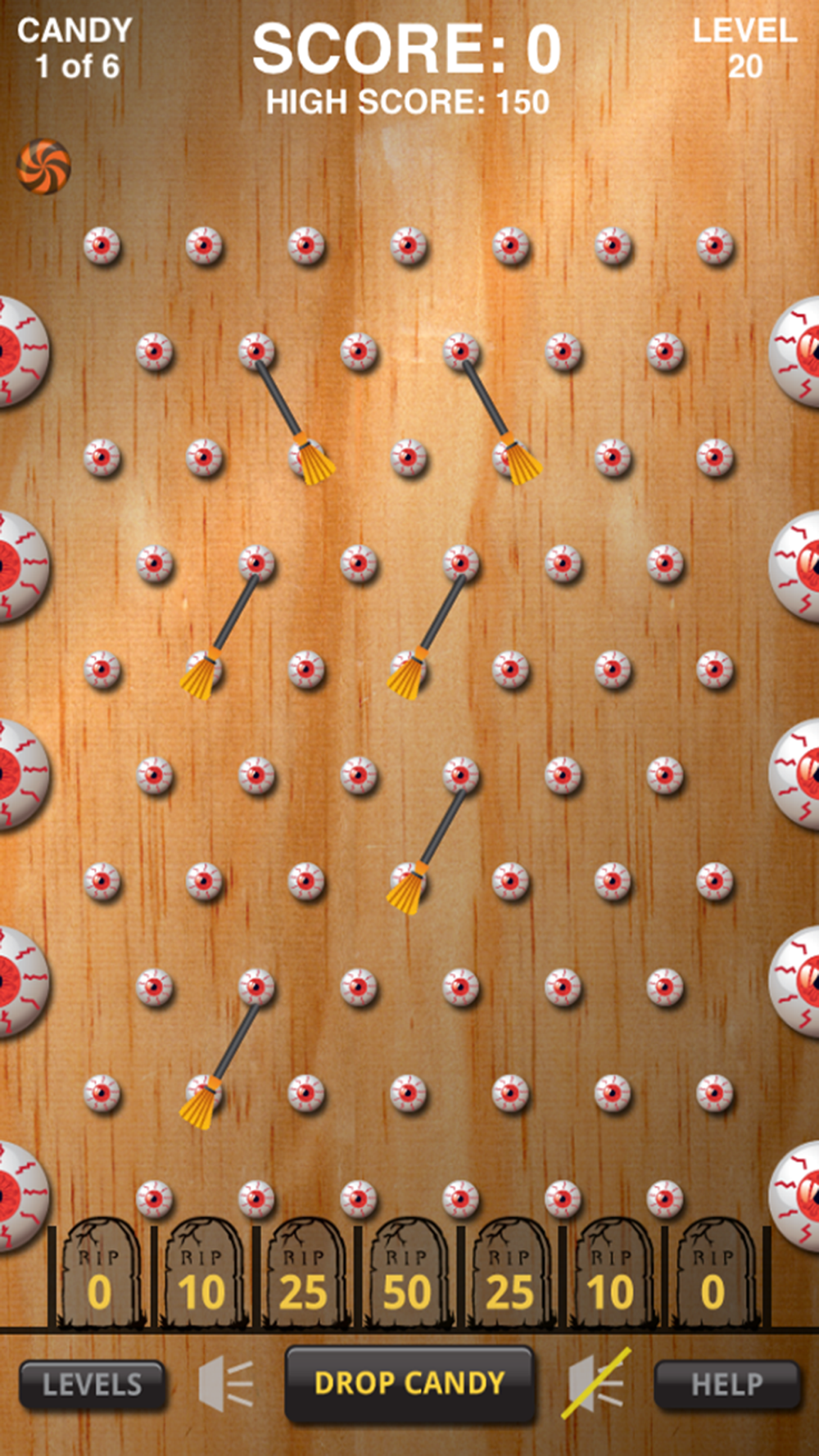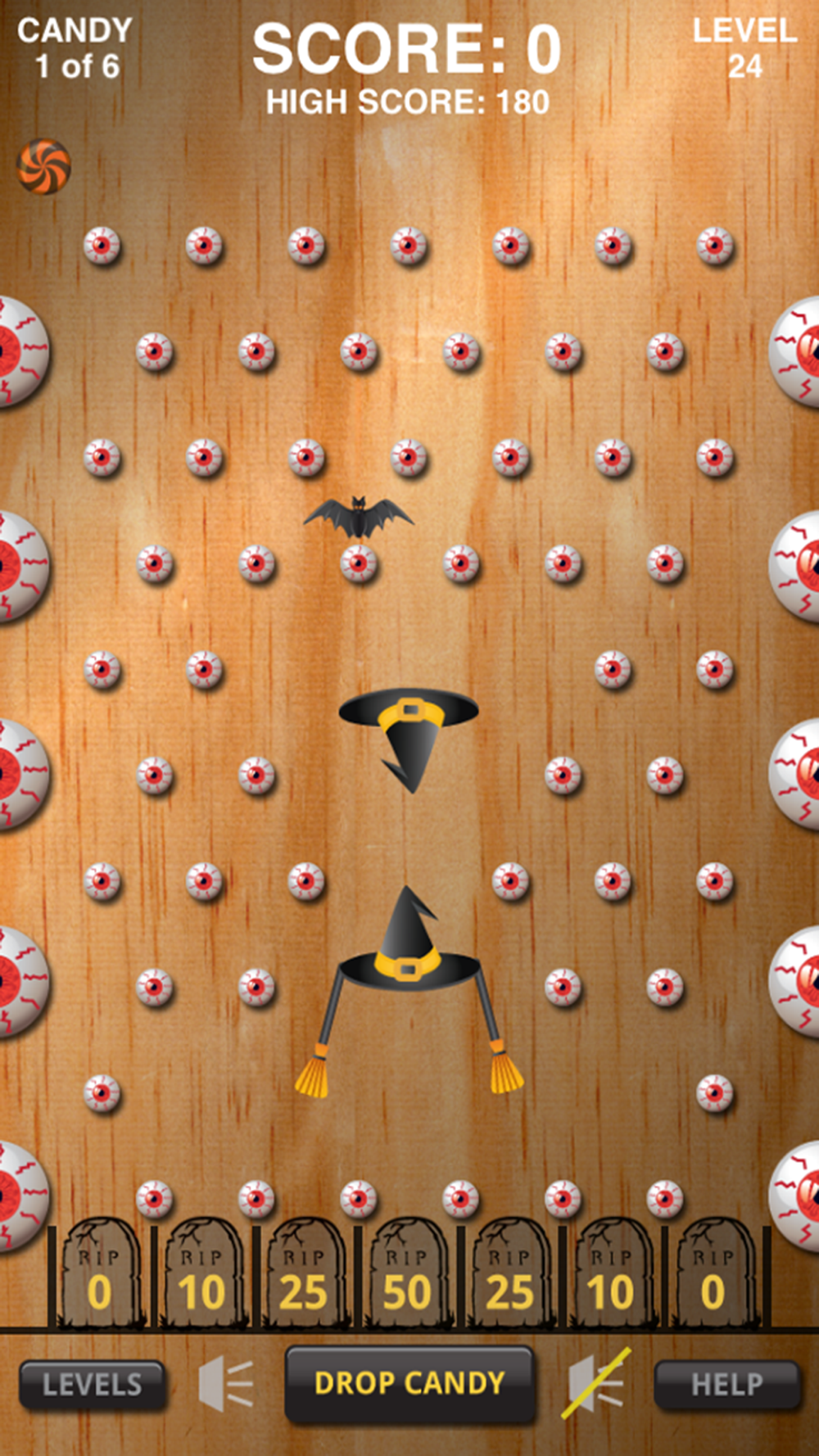 Halloween Candy Drop is a fun halloween themed game where you drop candy down a peg board. Halloween Candy Drop is fun, challenging, and addicting to play. Drag the candy at the top to where you want to release it and then click the "drop candy" button. The goal of the game is to get the highest score possible. You must get at least 150 points to unlock the next level. Some levels have objects that can effect the candy. Halloween Candy Drop is similar to Plinko which is a game on The Price Is Right. It is easy to play but hard to master.