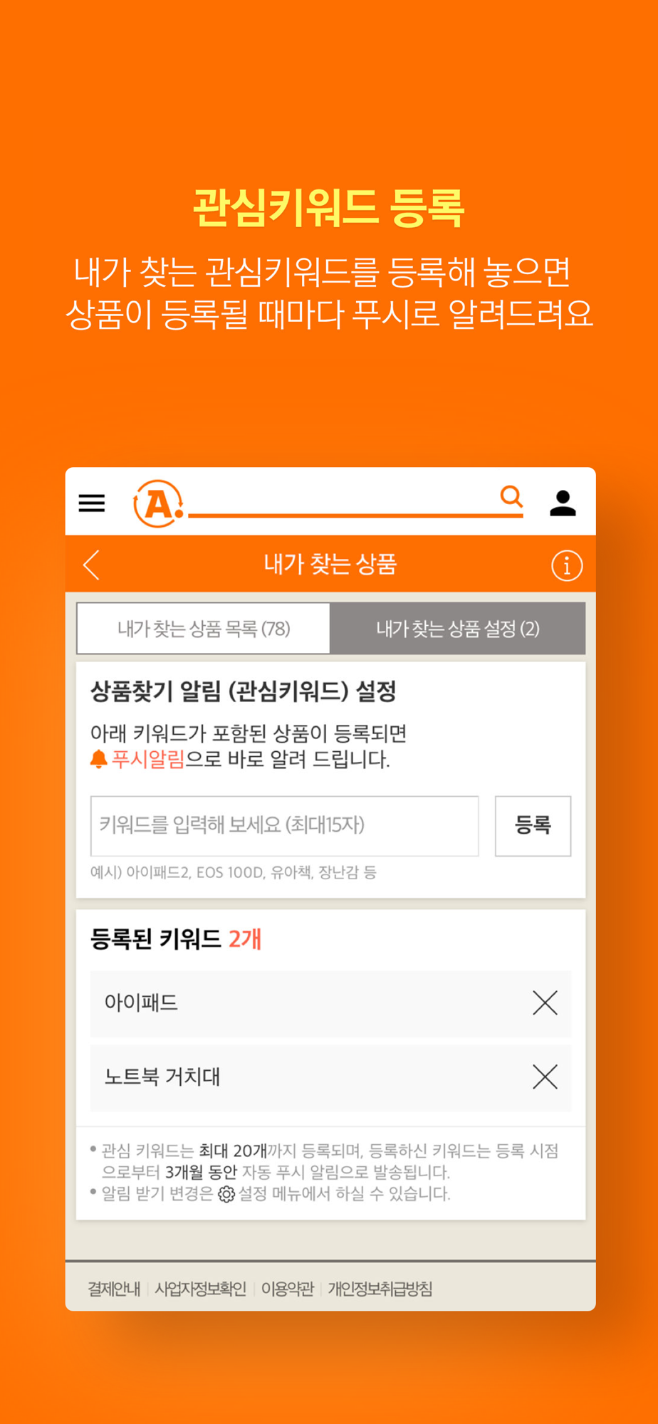 - 알림 : 상품 찾기 및 판매활동 관련 알림