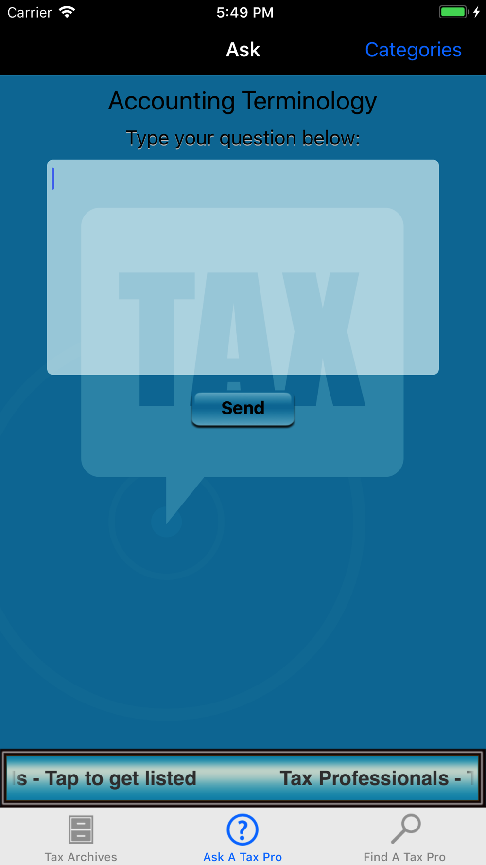 1. Search the “TAX ARCHIVES” by category to find your tax answer instantly. New questions and answers are added daily without the need to update your App.