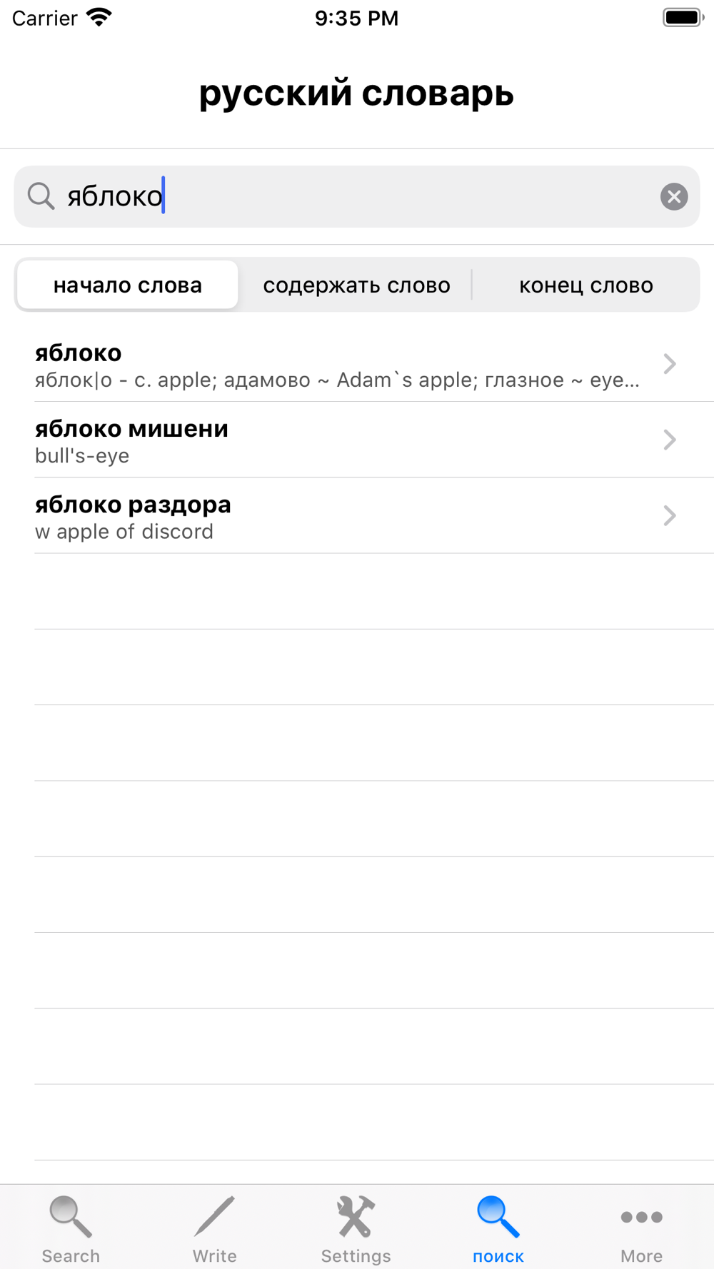 - Search the English word and it will display its Russian translation.