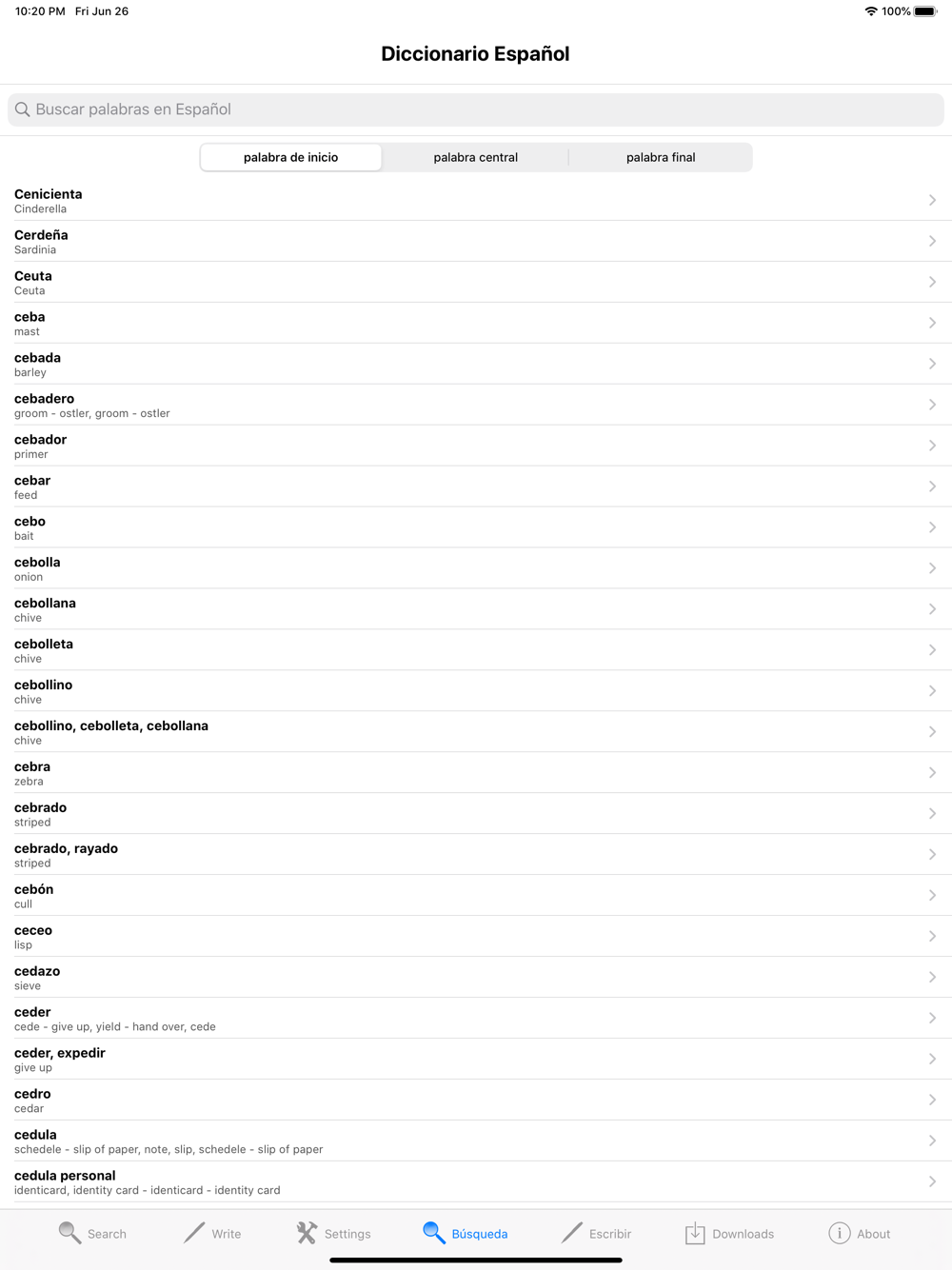 - Listen the Spanish and English sounds of searching words and its meanings offline and online.