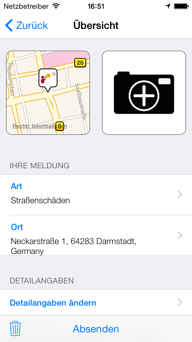 Sie erhalten auf Wunsch innerhalb von zwei Werktagen eine Rückmeldung. Außerdem können Sie jederzeit den Erledigungsstand Ihres Anliegens nachvollziehen: Auf einem Stadtplan wird mit entsprechenden Symbolen angezeigt, welche Meldungen bereits eingegangen sind und von uns bearbeitet werden.