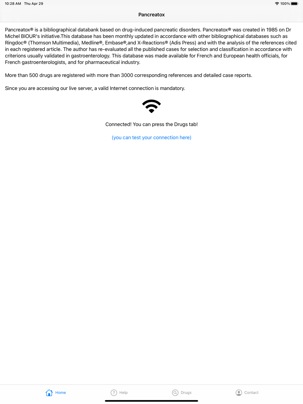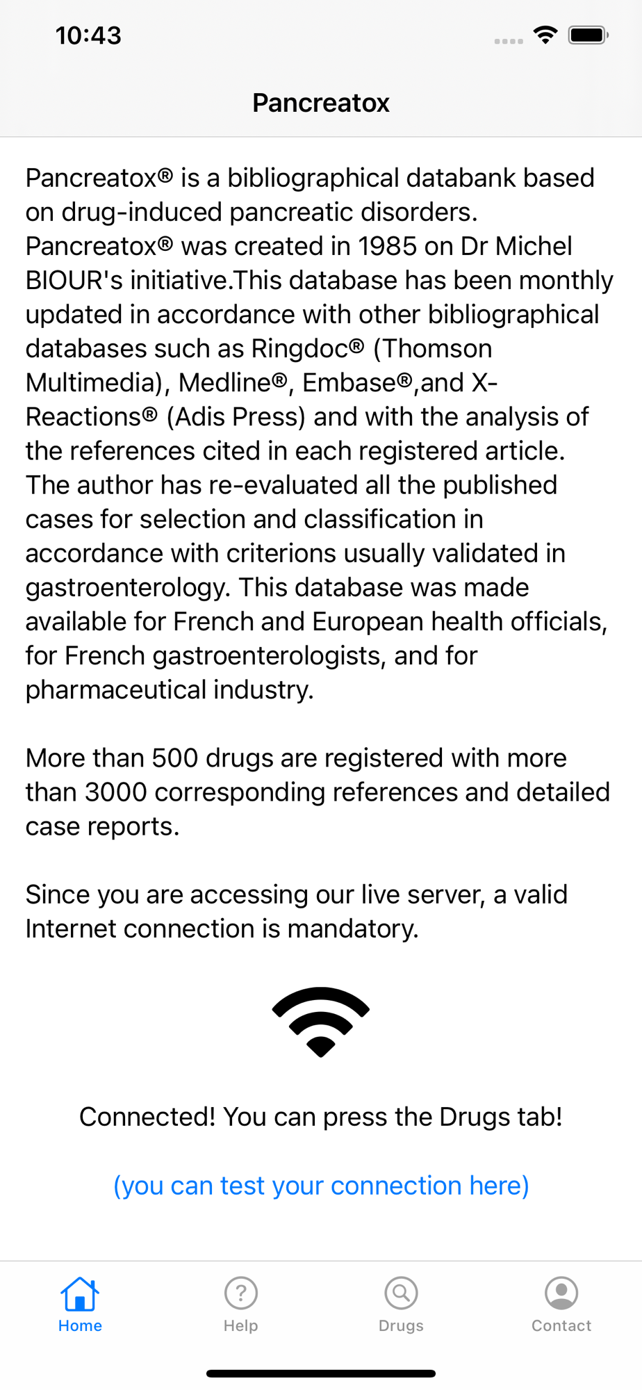 Pancreatox® is a bibliographical databank based on drug-induced pancreatic disorders. Pancreatox® was created in 1985 on Dr Michel BIOUR's initiative. This database has been monthly updated in accordance with other bibliographical databases such as Ringdoc® (Thomson Multimedia), Medline®, Embase®, and X-Reactions® (Adis Press) and with the analysis of the references cited in each registered article. The author has re-evaluated all the published cases for selection and classification in accordance with criterions usually validated in gastroenterology. This database was made available for French and European health officials, for French gastroenterologists, and for pharmaceutical industry.