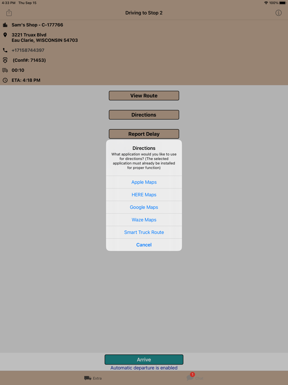 Report a Delay: Life happens – we understand that your drivers might need to stop for gas, get stuck in traffic, or get caught up in something else that might delay them. With our ‘Report a Delay’ feature, drivers can update dispatchers of these delays right away so they can keep their ETAs up to date for both your company and customer.