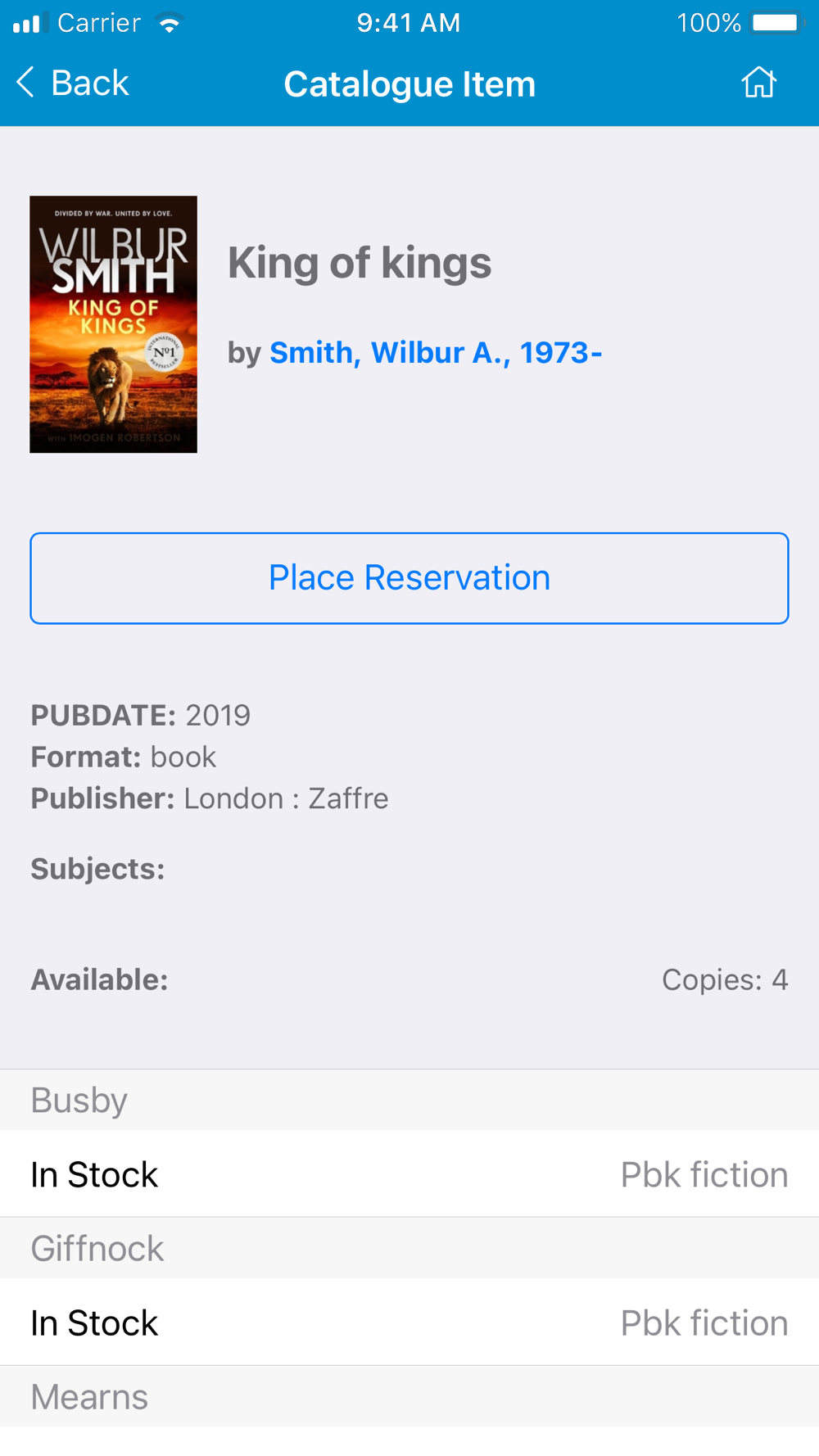 * Linked accounts - manage multiple user accounts at the same time without having to log out and back in again.* Bulk loan renewals and reservation change/cancellations* More searching options* At a glance view of which libraries are open right now