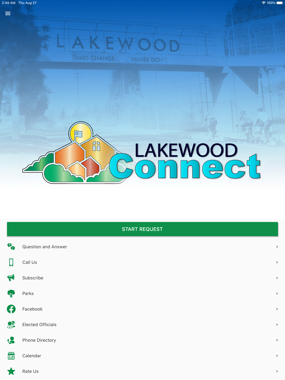 Ask a question, report an issue, or give input to the City of Lakewood, California anytime, using Lakewood Connect. See a pothole, graffiti, or a burned-out streetlight? Want to request a tree trim? Have a question about street sweeping or trash pickup? Submit it easily using this app. Just select your issue and take a picture, if applicable - the app knows the location and sends the service request directly to the city’s customer service staff, where it will be handled by the next business day. This app provides Lakewood residents, businesses and visitors the ability to communicate with City Hall 24/7. You can also receive the latest city news, information and events through this app.