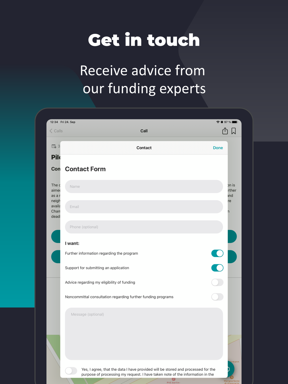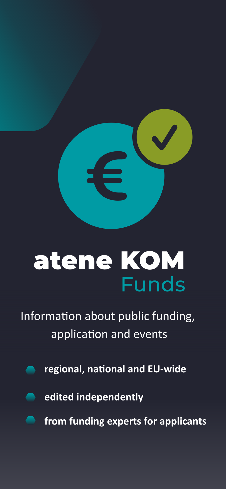 atene KOM Funds provides a quick and comprehensive overview of public funding at the EU, national and regional levels, providing you with information about the application process and relevant events.